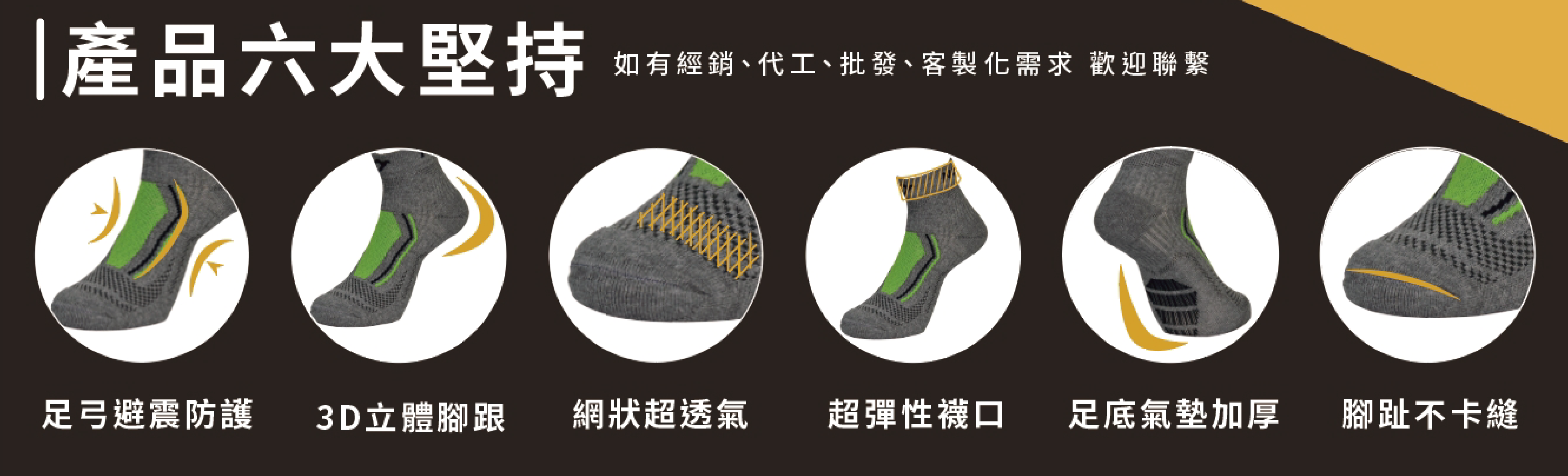 6.腳底緩衝: 藉由腳底增加毛圈高度而達成避震緩衝的作用。