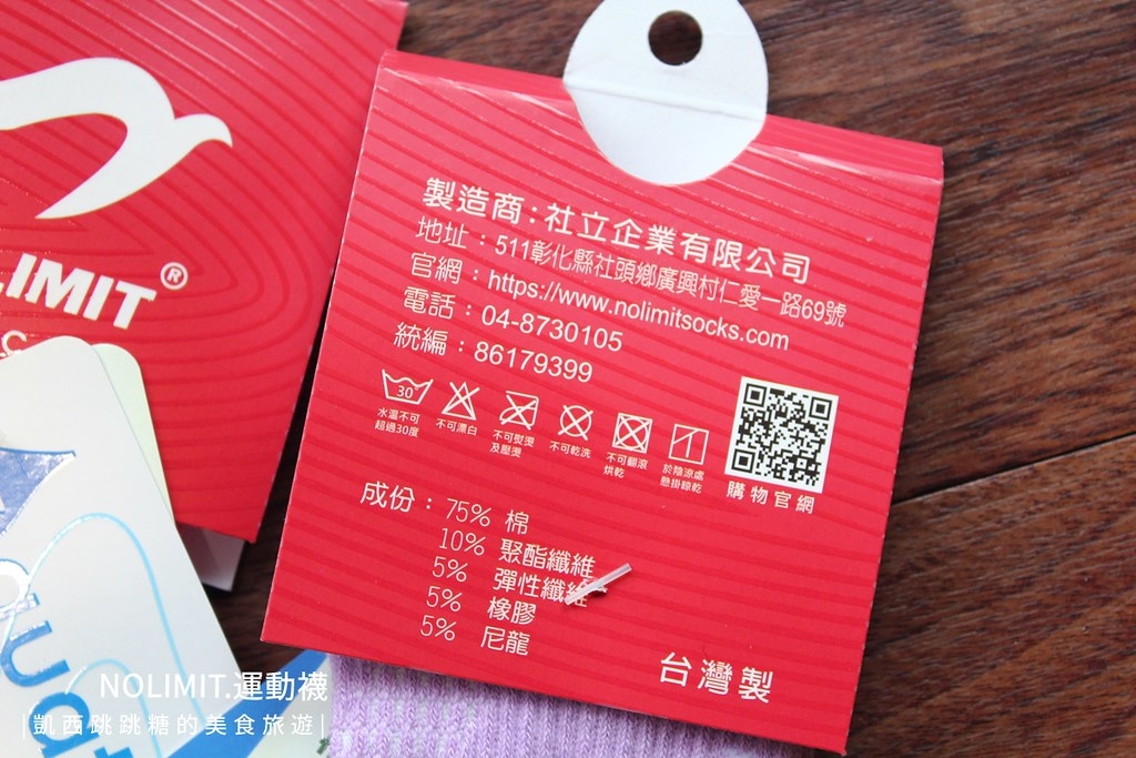 NOLIMIT是台灣專門的運動機能襪品牌,襪子都是在彰化社頭生產製造,都有申請MIT微笑產品驗證。