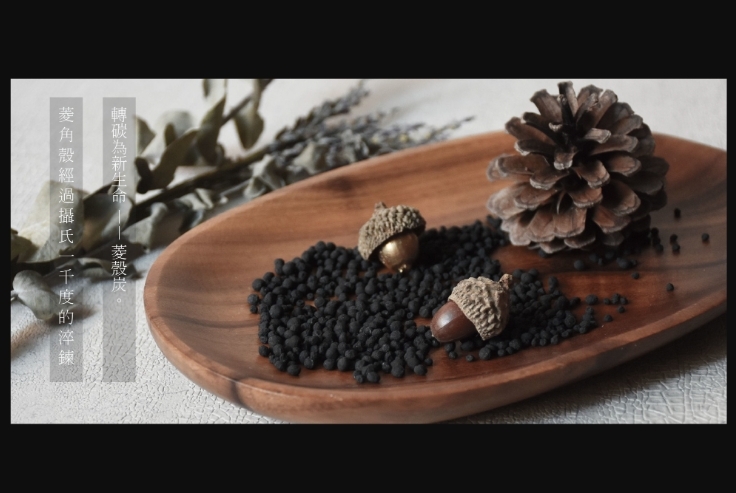 獨家採用官田烏金-Water Chestnut Shell Yarn菱炭紗,利用回收的菱殼(菱角殼)作為原料,透過專業製程再生成友善環境與機能兼具的菱炭除臭氣墊襪。